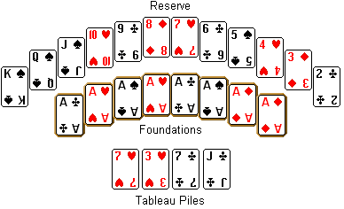 The object of the game is to build eight foundation piles up regardless of suit running from Ace to King.