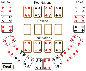 The object of the game is to build eight foundation piles regardless of suit and color: up on Aces and down on Kings.