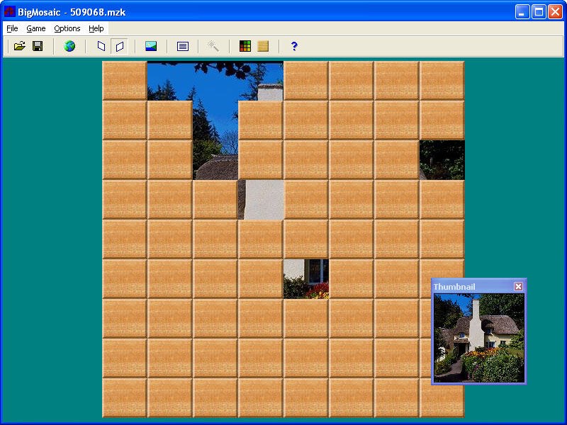 BigMosaic is a logic game similar to jigsaw puzzles. The goal is to make up two mosaic pictures from rectangular two-sided tiles. You can rotate tiles, turn them upside down and change over any two tiles. You are able to assemble both pictures separately or mix their tiles to make a task more difficult. To make it even more difficult, you can choose the mode when you see only the active tile and the tiles already solved. The tiles size and shape depend on your wish (number of tiles is up to 1600). The game can be saved. The full version includes a collection of more than 90 extra puzzles made of professional photos or famous paintings, and a MosMake utility for making your own puzzles. |