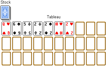 Click the stock to deal a new card to the tableau. Cards are dealt in a row to the empty spaces.